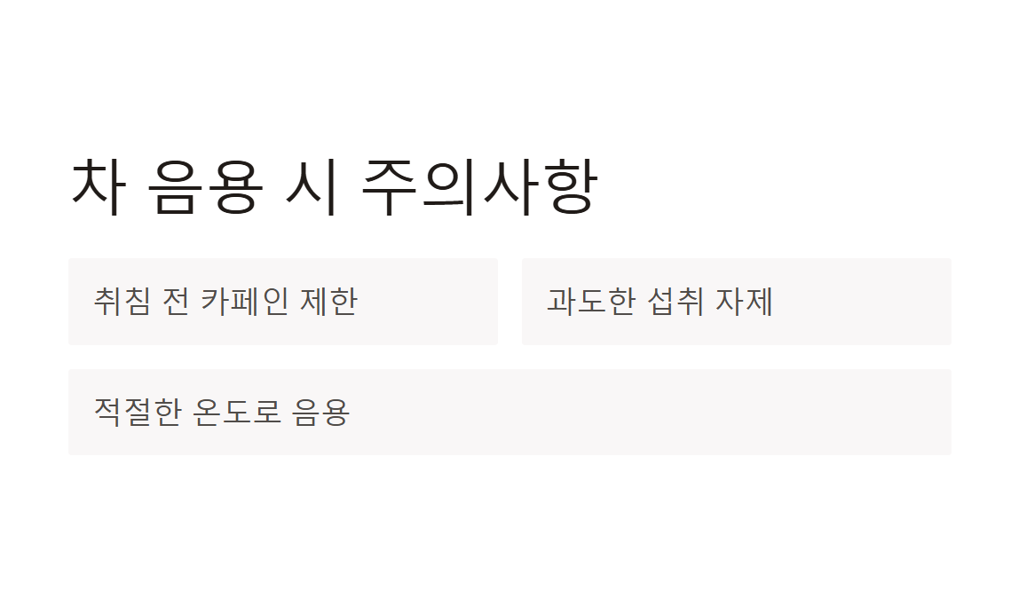 차를 올바르게 음용하지 않을 경우 오히려 부작용을 초래할 수 있으므로 주의해야 합니다.