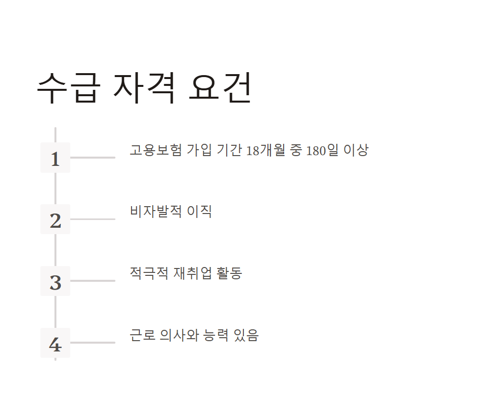 실업급여를 받기 위해서는 몇 가지 조건을 충족해야 합니다. 모든 실직자가 실업급여를 받을 수 있는 것은 아니므로, 본인이 수급 대상에 해당하는지 꼼꼼히 확인하는 것이 중요합니다.