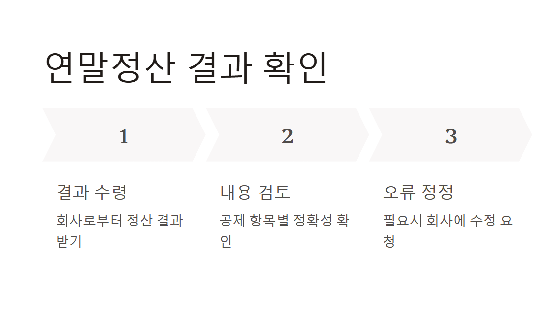 - 연말정산 결과 꼼꼼히 확인: 연말정산 결과를 받은 후에는 오류가 있는지 꼼꼼히 확인해야 합니다.