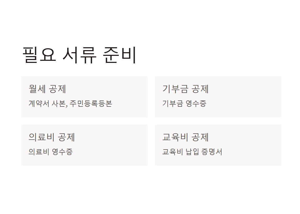 - 기부금 공제 관련 서류: 기부금 영수증